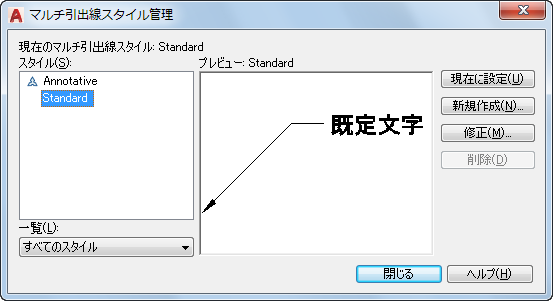 [スタイル]一覧で選択したスタイルを現在のスタイルに設定します。新しいマルチ引出線はすべてこのスタイルで記入されます。