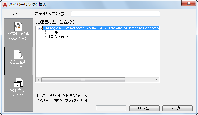 現在の図面内の名前の付いたビューをリンク先として指定します。