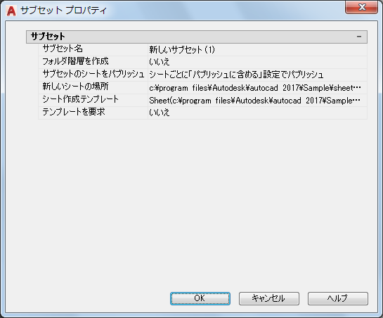 このサブセットの新しい図面ファイルを作成する場合に使用する図面テンプレート(DWT)ファイルとレイアウト名を指定します。