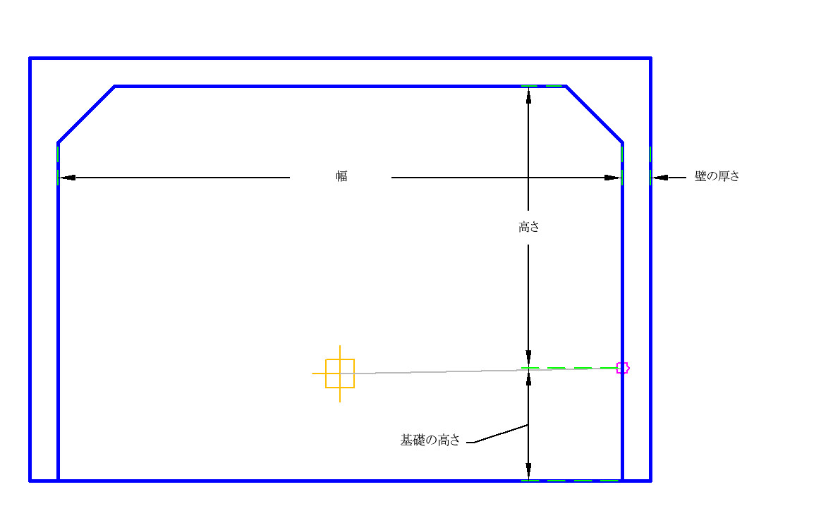 | 基礎の高さ | トンネルの床面以下に沈むトンネルの壁の深さ | 数値、正 |
