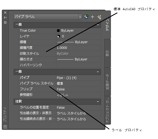 パイプ ラベルの AutoCAD プロパティを編集