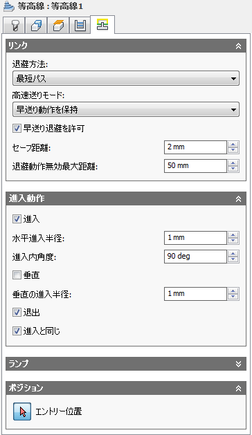 進入が進入からツールパスに移動するときに円滑化される垂直円弧の半径です。