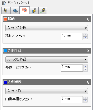 放射状仕上げ代を変更すると、軸方向の仕上げ代を手動で入力しない限り軸方向の仕上げ代に同じ量が自動的に設定されます。