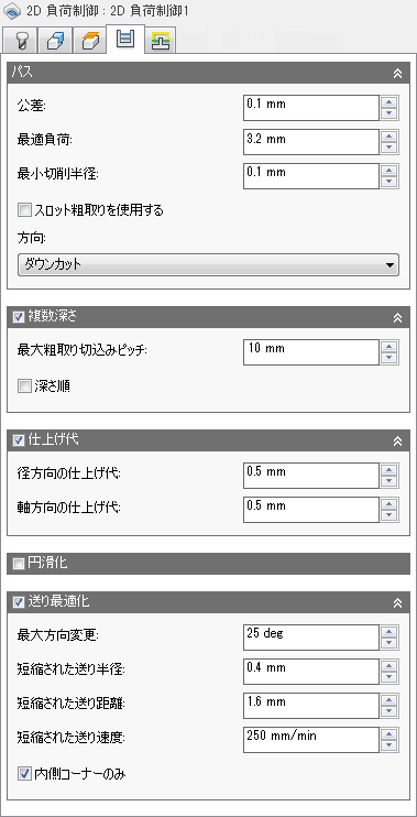 負荷制御方法で維持する、刃物があたる量を指定します。