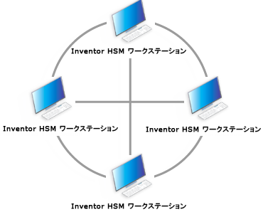 ディストリビュート CAM を使用すると、ワークステーションをより効率的に利用することができます。ディストリビュート CAM は、下図のように、さまざまな設定で使用することができます。