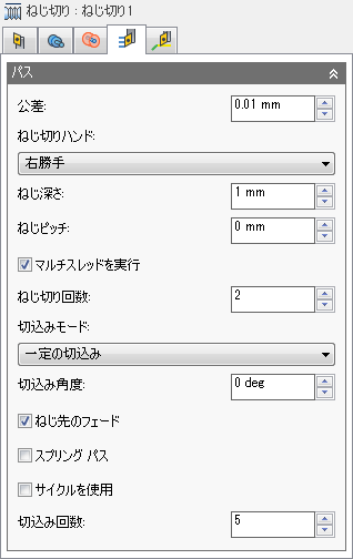 有効にすると、ねじ切り回数をアクティブにすることができます。