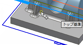 をクリックして、[工具ライブラリ]ダイアログを閉じます。 既定では、平坦部仕上げ加工法は、パーツの上部およびパーツの頂上部の小さな平面領域を加工します。この操作では下部の平坦な面のみ考慮する必要があるため、加工する深度の範囲を制限することができます。