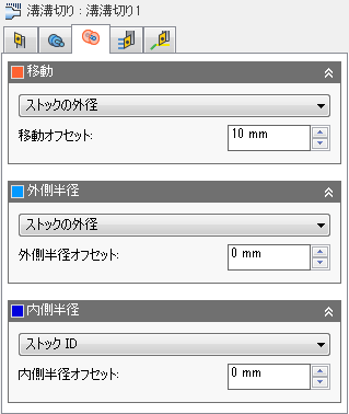 放射状仕上げ代を変更すると、軸方向の仕上げ代を手動で入力しない限り軸方向の仕上げ代に同じ量が自動的に設定されます。