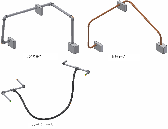 指定の継手で接続された一連の直線パイプ セグメントを作成します。必須および任意の継手は、作成するリジッド パイプ スタイルによって異なります。