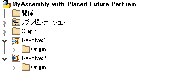 - アセンブリ ファイル内に将来のバージョンのパーツ ファイルを配置します: アセンブリ ファイル内で、リボンから[アセンブリ]タブ