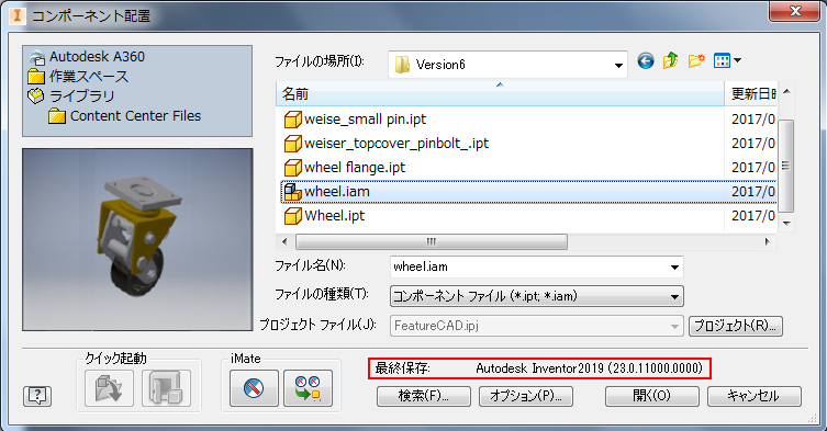 将来の(新しい)バージョンの Inventor のアセンブリ ファイルを旧バージョンの Inventor で参照します。