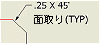 [面取り]コマンドは、図面ビューに面取りの注記を追加するために使用します。 |