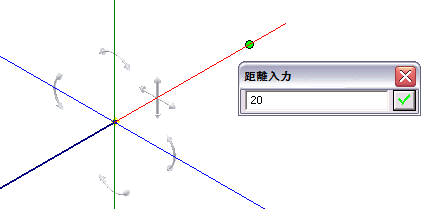 3D マニピュレータの回転矢印または方向軸の上にカーソルが置かれているときに、正確な距離の値を入力します。