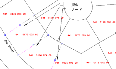 疑似ノードは、2 つのリンクが交わる位置に存在します。疑似ノードを削除すると、1 つの画層に単一のポリラインが作成されます。