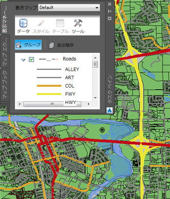 主題では、該当の画層に関連付けられているプロパティや属性に基づいて、フィーチャ画層にあるフィーチャの表示が変わります。