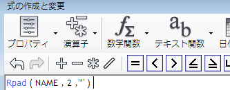 たとえば、テキスト文字列の右側に 3 つのアスタリスクを付加する場合、式は次のようになります。