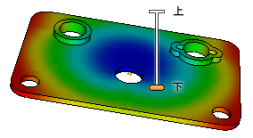 [画面移動]ツールとは異なり、[上/下]ツールを使用することで、現在の視点のモデルの Z 軸に沿った高さを調節できます。現在のビューの垂直の高さを調節するには、上下にドラッグします。ドラッグするときには、現在の高さと移動可能な範囲が、垂直距離インジケータと呼ばれるグラフィックス要素に表示されます。
