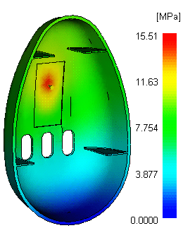 射出圧力の結果は充填解析で生成され、充填過程で速度/圧力切り替えが起きる前に得られる最大射出圧力値を示します。 充填完了時の圧力結果は、充填解析で生成され、キャビティが樹脂で完全に充填された時のキャビティ内の圧力分布を示します。