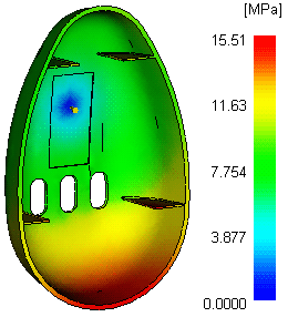 圧力降下結果では、各領域の圧力降下を、最高から最低まで一定の範囲の色を使用して表示します。この結果は、成形品の各領域を充填するために必要な圧力を示します。