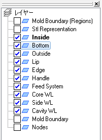 チェックされたレイヤーがモデル表示ペインで表示状態になります。これらのレイヤーに割り当てられたすべてのエンティティが画面上で表示状態になります。
