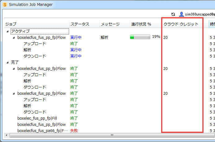クラウド ジョブのコストは、Simulation Job Manager のリスト ビューからを確認できます。