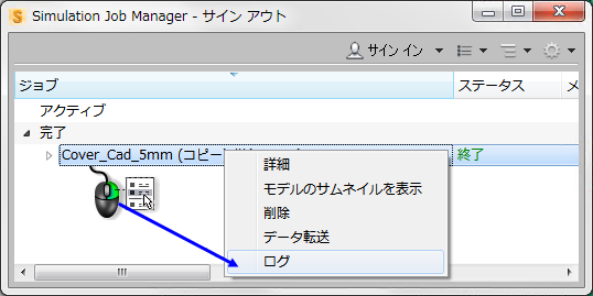 Simulation Job Manager が解析の完了を示しているのに、結果のすべてが Simulation Job Server によってクライアントに戻されてはいない場合、結果を手動で取得することができます。