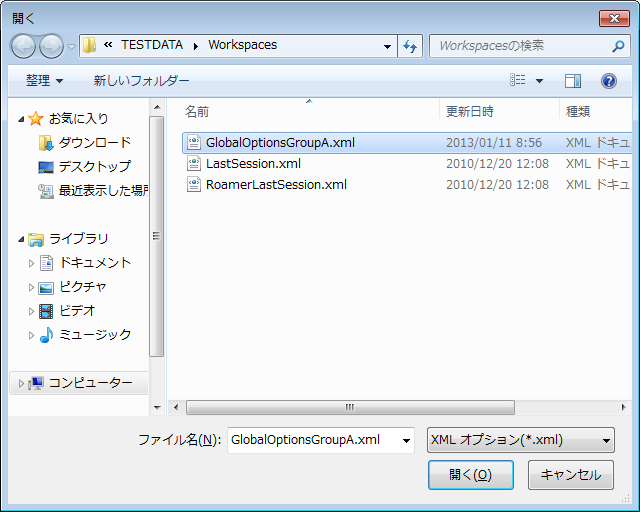 3. [ファイルを開く]ダイアログ ボックスで、設定ファイルを含むフォルダに移動してそのファイルを選択し、[開く]をクリックします。