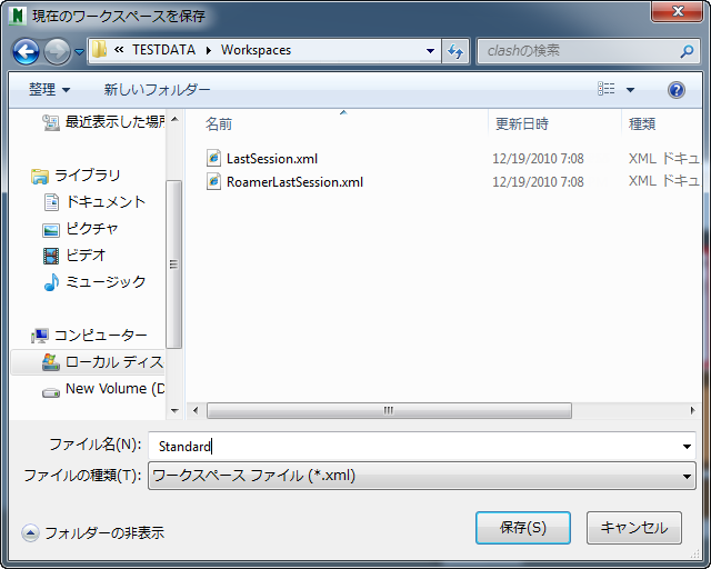 3. [現在のワークスペースを保存]ダイアログ ボックスで、新しいワークスペースの名前を入力します。また、変更された環境設定で上書きする既存のワークスペースの名前を選択することもできます。