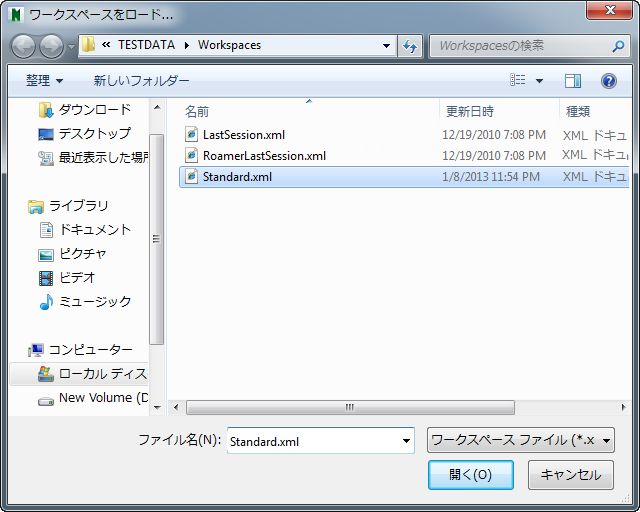 ダイアログ ボックスで、目的のワークスペースを含むフォルダを参照してそれを選択します。