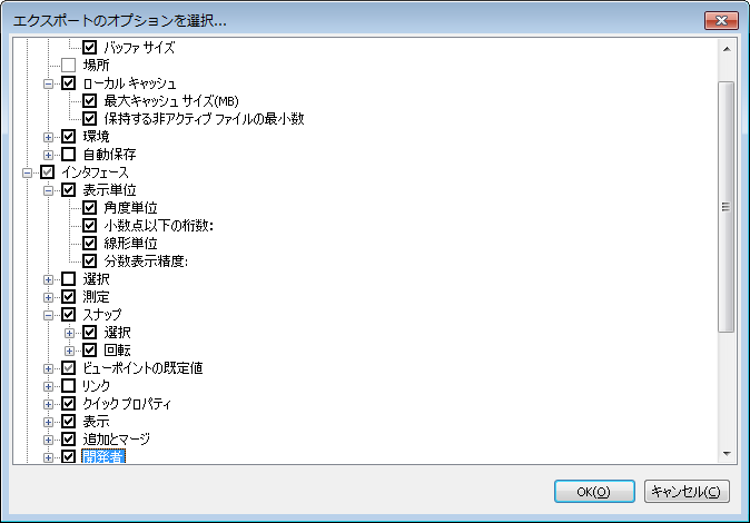 3. [エクスポートのオプションを選択]ダイアログ ボックスで、エクスポート(または「シリアライズ」)するすべてのオプションのチェック ボックスをオンにします。エクスポートすることができないオプションは灰色で表示されます。