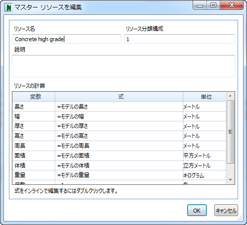 リソース カタログは、プロジェクトのリソースのデータベースです。リソースは、関数およびタイプ(マテリアル、設備、ツールなど)に関連付けられることがあり、壁板、内装材、または構造コンポーネントを含むことがあります。