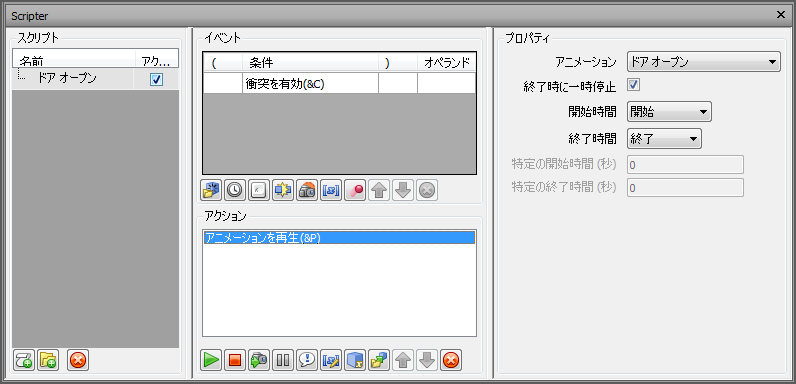 [Scripter]ウィンドウは、ユーザのモデルのオブジェクト アニメーションにインタラクティビティを追加することができる浮動ウィンドウです。