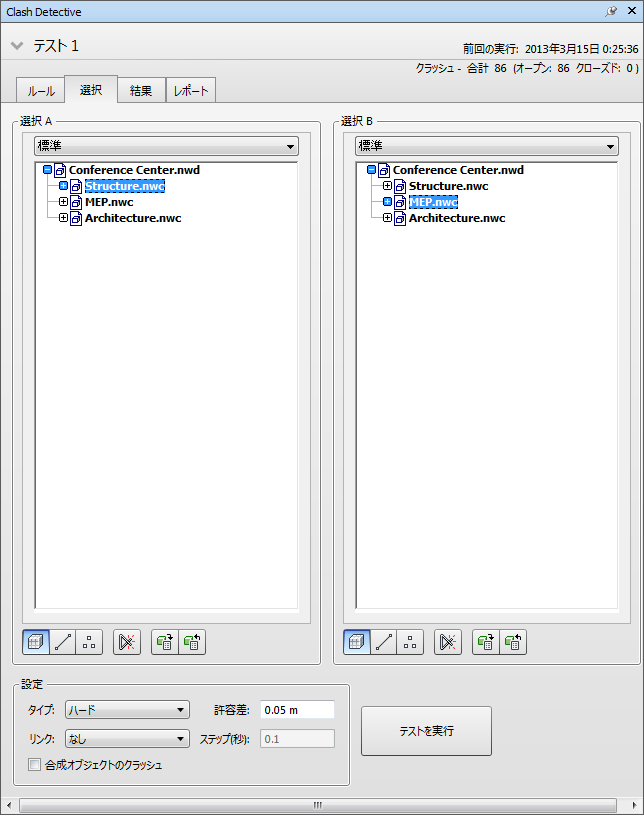 選択セットと検索セットを使用すると、クラッシュ テストを素早く効果的に行うことができ、簡単に繰り返すことができます。どのオブジェクトの組に対してクラッシュ テストを行う必要があるかを十分に考慮し、それに応じて選択セットと検索セットを作成してください。