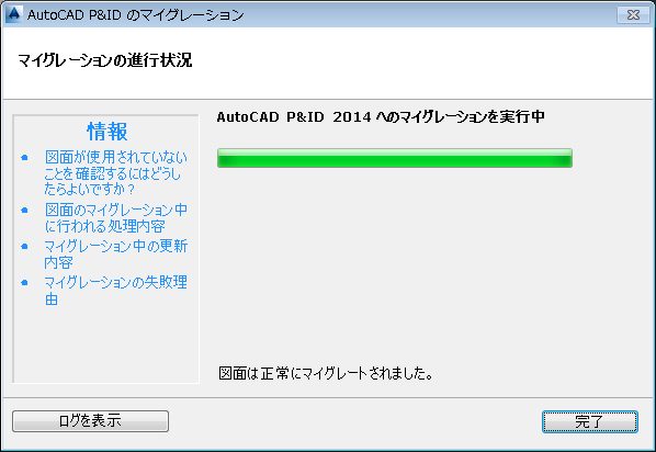 図面のマイグレーション ウィザードが開始されます。