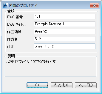 - [説明]に、説明を入力します(例: この図面が属しているプロジェクト )。