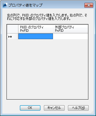 他のプログラムで同様のプロパティと対応させる必要のある P&ID のプロパティ値を入力します。