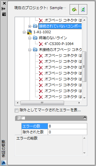 現在のプロジェクトの各図面で見つかったエラーが表示されます。