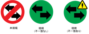 コネクタの接続状況や接続されていてもプロパティの不整合があるかは一目で分かります。コネクタの横にはその状態に応じたステータス アイコンが表示されます。