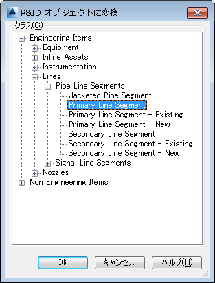 [P&ID オブジェクトに変換]ダイアログ ボックス