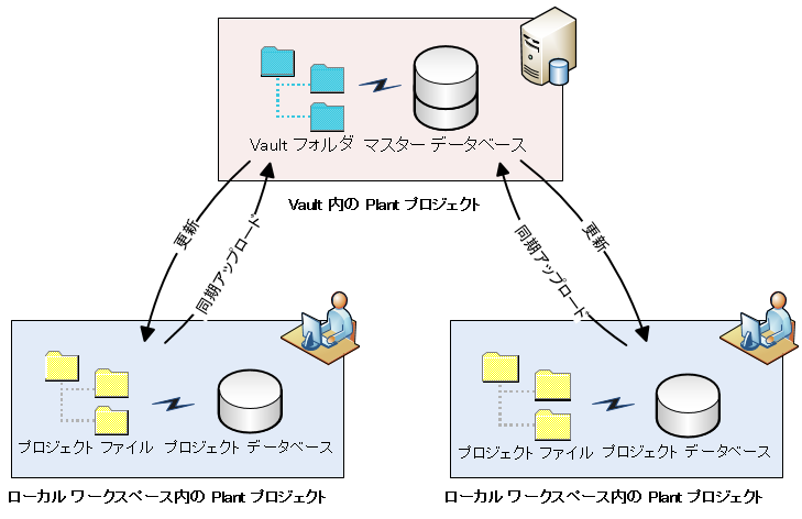 [プロジェクト マネージャ]を使用して Vault からプラント プロジェクトを初めて開くと、ローカル ワークスペースが作成され、ファイルが Vault からコピーされます。このローカル ワークスペースはユーザごとに作成されます。