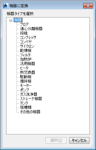 機器タイプの一覧が表示されます。AutoCAD オブジェクトを変換する機器タイプをクリックします。