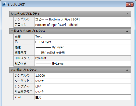 - [シンボル設定]ダイアログ ボックスでは、色、画層などを変更することができます。[OK]をクリックします。