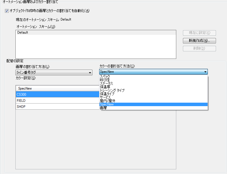 [オートメーション画層およびカラー割り当て]ペインの[カラーの割り当て方法]リストで、新しい項目をクリックします。