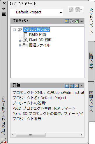 プロジェクト管理の開始点は、[プロジェクト マネージャ]です。すべての図面はプロジェクトに編成されており、プロジェクトは、次を含むすべてをコントロールします。