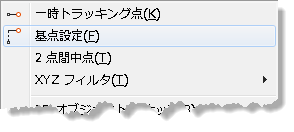 - [Shift]を押しながら作図領域内を右クリックし、オブジェクト スナップ(中点など)をクリックします。