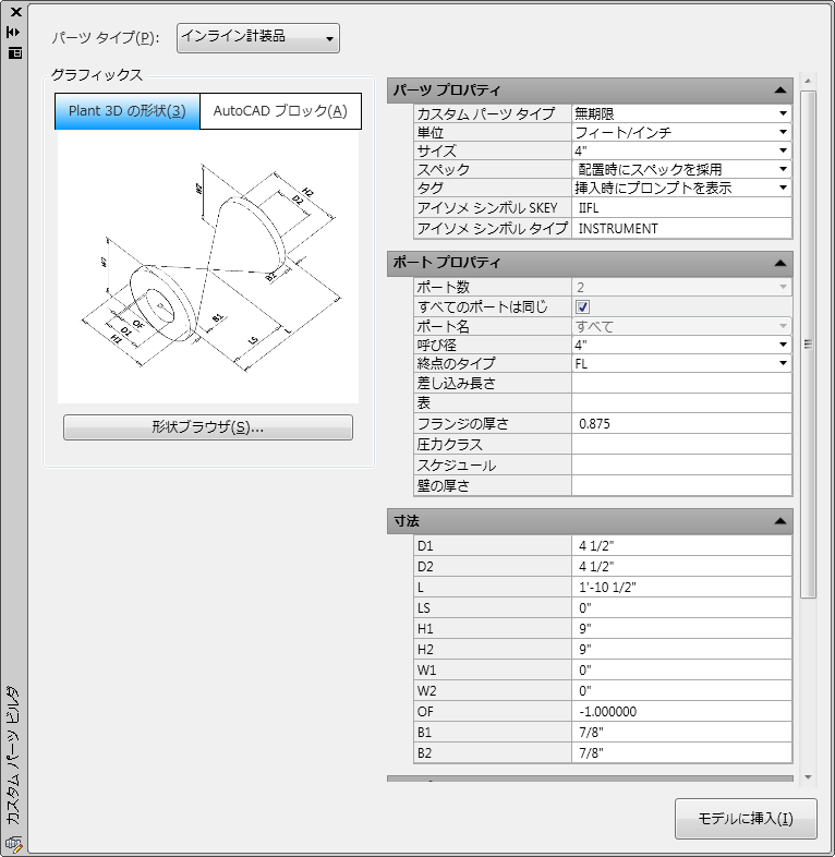 [Plant 3D 形状ブラウザ]ダイアログ ボックスが表示されます。