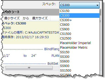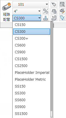 ドロップダウン リストで、配管スペック([CS300]など)をクリックします。