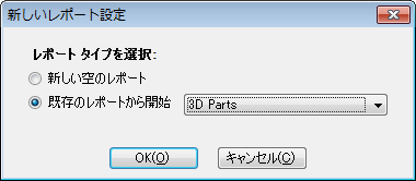 - [新しいレポート設定]ダイアログ ボックスで、[既存のレポートから開始]をクリックし、修正する設定を選択します。[OK]をクリックします。