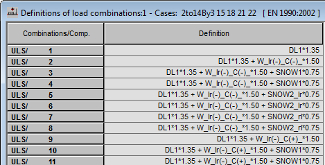 Load case combinations, which are generated automatically, are used to check resistance and serviceability for real situations in which various loads act simultaneously, as defined by a specific code. If required, you can define the action combinations manually, one by one.