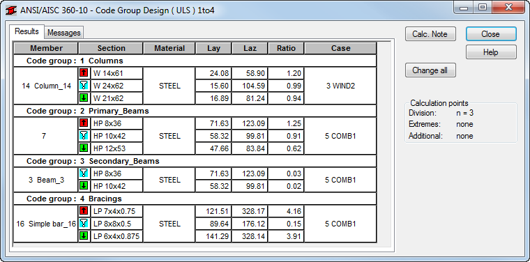20. In the Calculations dialog, click Calculations to start the design process with the updated columns sections.